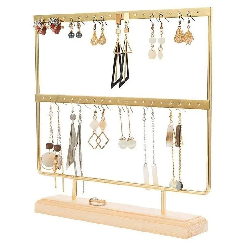 Crafted from durable materials such as metal, acrylic, or wood, the earring stand is built to last while complementing your décor. Its thoughtfully designed layout ensures that your earrings are neatly arranged, making it easy to choose your favorite pair quickly. Whether you have a small collection or a growing assortment of jewelry, this earring stand offers a practical solution to keep your earrings organized while showcasing them attractively.