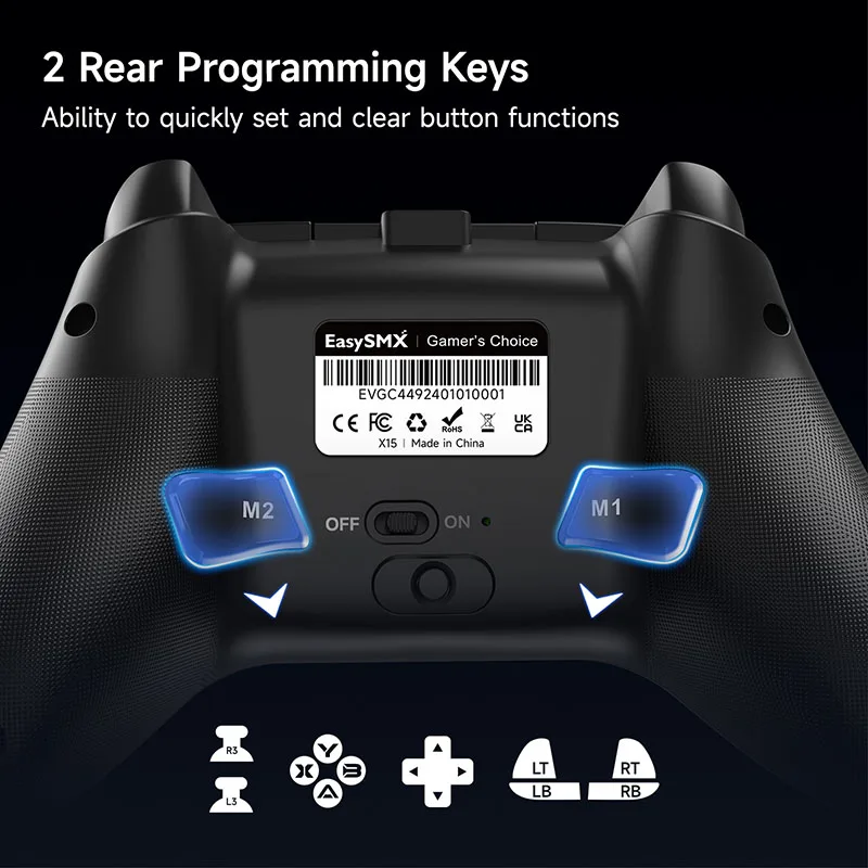 The EasySMX X15 wireless gamepad is a versatile Bluetooth gaming controller compatible with PC, phone, and Nintendo Switch. It features Hall effect joysticks for precise control and RGB lighting for a stylish gaming experience. With its ergonomic design and responsive buttons, it provides comfort and performance for all your gaming needs.Connection How-to Video