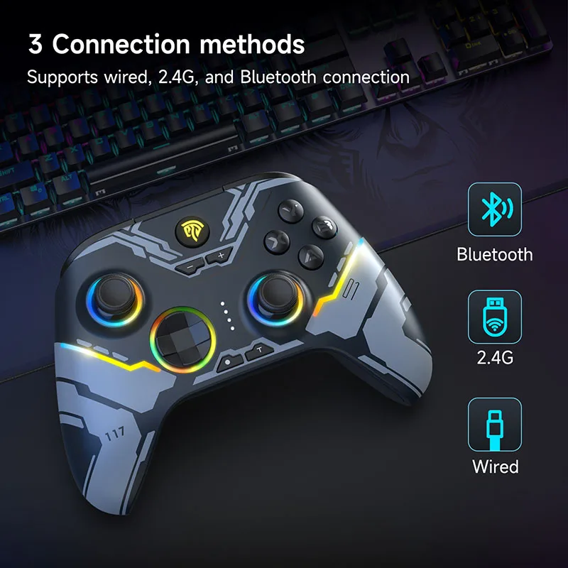 Three-Mode Connection: Supports three connection methods: Bluetooth, wired, and 2.4G. Players can choose the connection method that suits