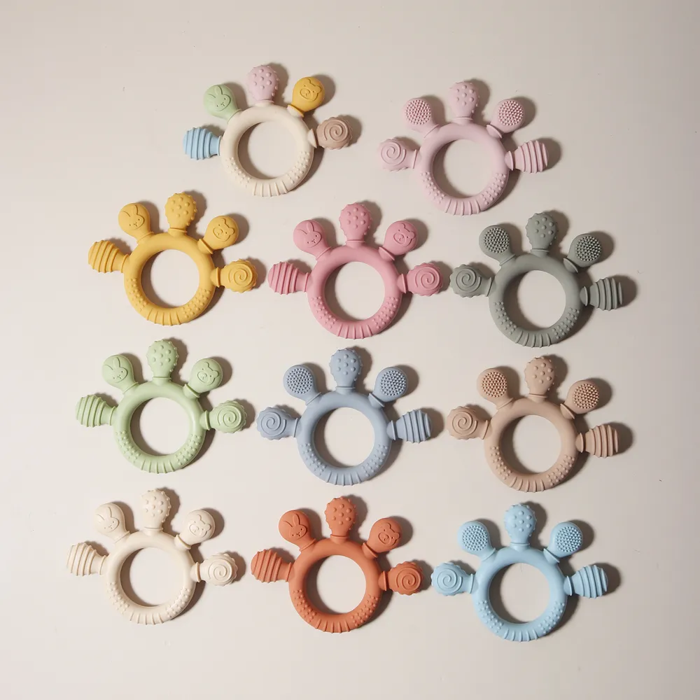 Color classification: Palm teether multicolor, Palm teether creamy-white, Palm teether sage green, Palm teether light pink, Palm teether