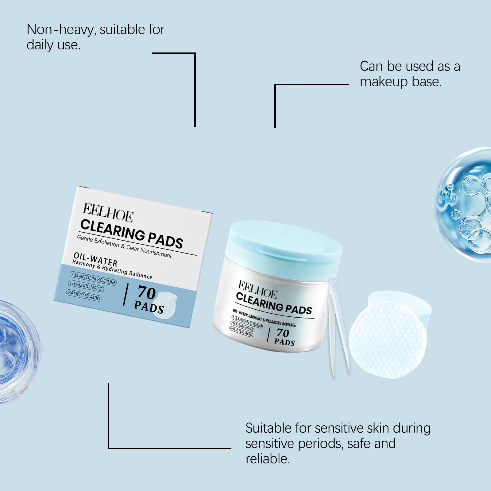 Clearing pads, gentle exfoliation pads, salicylic acid pads, hydrating skincare, sensitive skin exfoliator, EELHOE pads, daily skincare pads, hyaluronic acid pads.