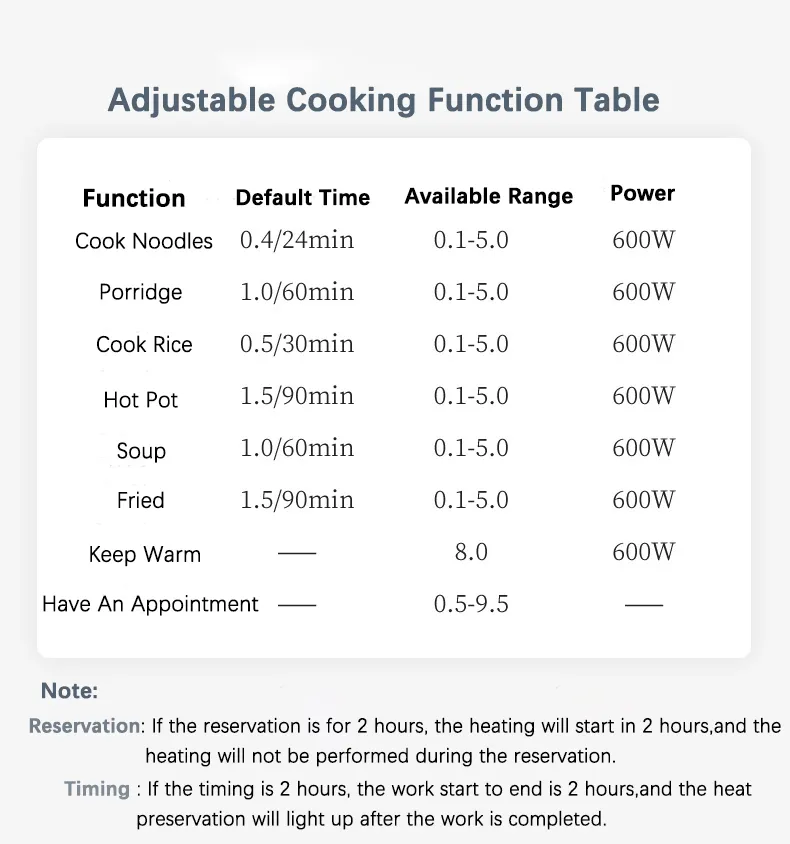 4. No matter which function of "steaming", "porridge", "rice cooking", "hot pot", "decocting" and "soup", after the working time is