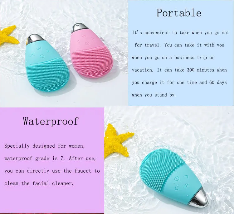 Advanced Sonic Technology: The electric facial cleansing brush uses sonic vibrations to deeply cleanse the skin, removing