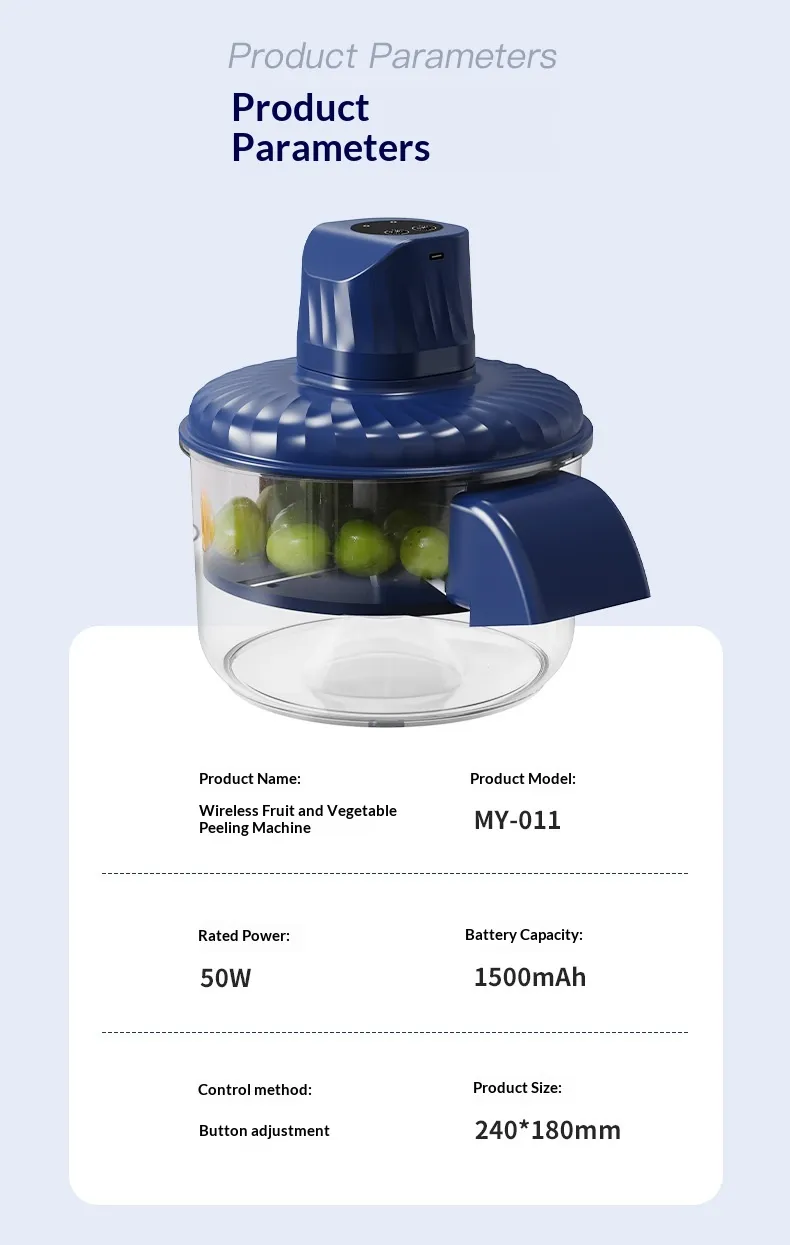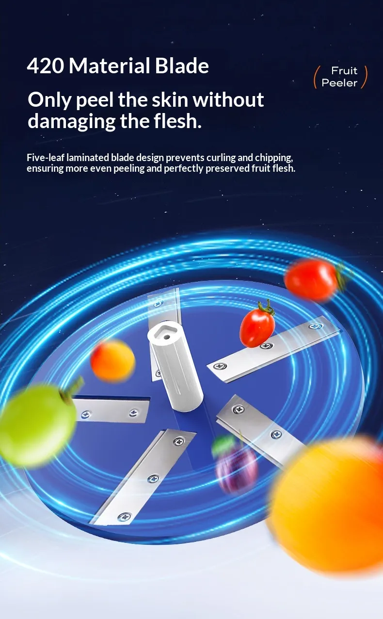 - Efficient Electric Peeler: Automatically peels fruits and vegetables with minimal effort.