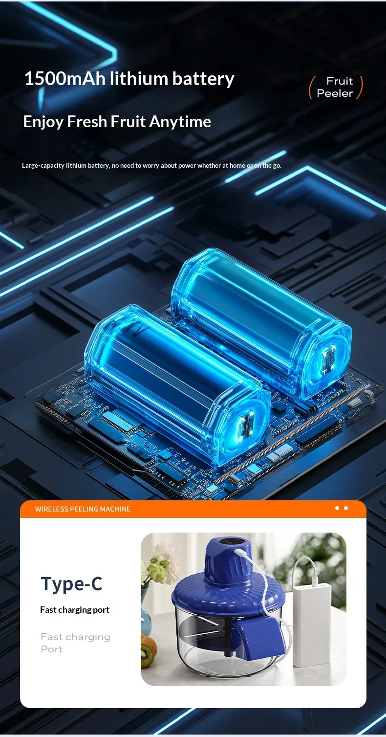 - Wireless & USB Rechargeable Design: No longer is the user tied to a power outlet, as the Automatic Peeler Machine supports both wireless and USB charging. Its compact design keeps the blades covered for added safety. Lightweight and portable, it’s convenient for home use, outdoor activities, or meal prep during gatherings