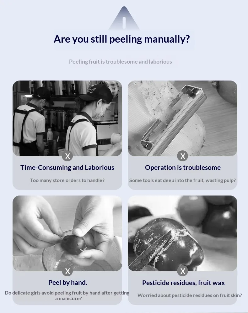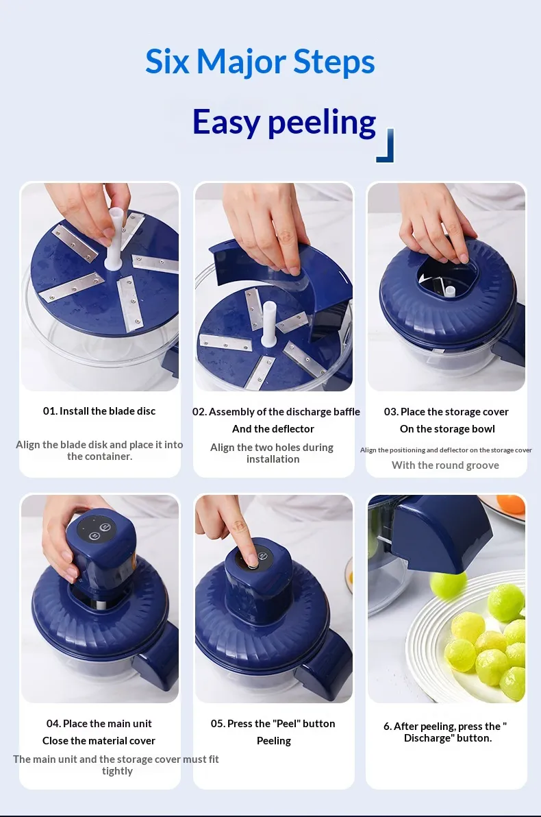 - Durable and Easy to Clean: This automatic peeler quickly handles small, smooth fruits like grapes, cherry tomatoes, and plums, and easily removes garlic skins without rubbing. With a transparent detachable bowl and compact, safe design, it’s perfect for preparing jams, salads, and sauces at home or in commercial kitchens