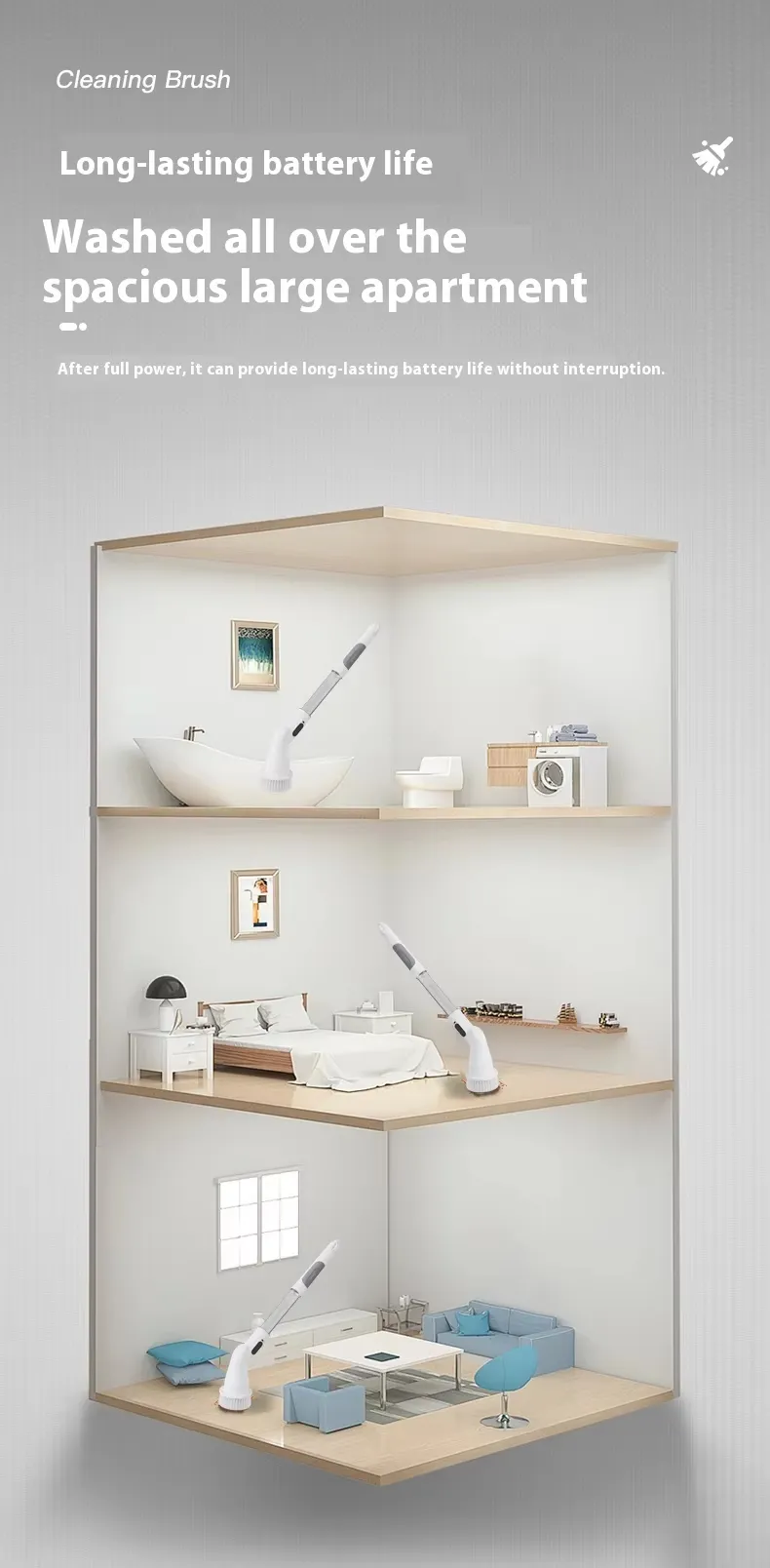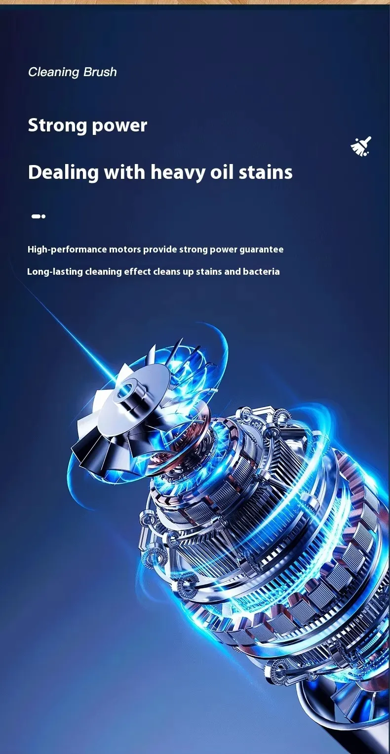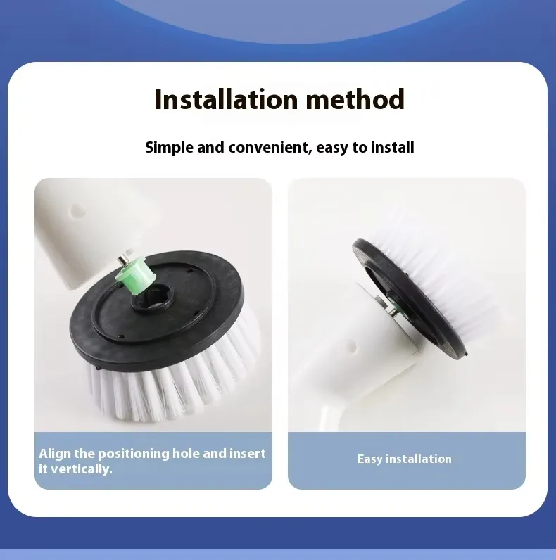 Equipped with a high-torque motor, the brush spins at adjustable speeds to effectively remove tough dirt and stains, reducing manual scrubbing effort significantly.