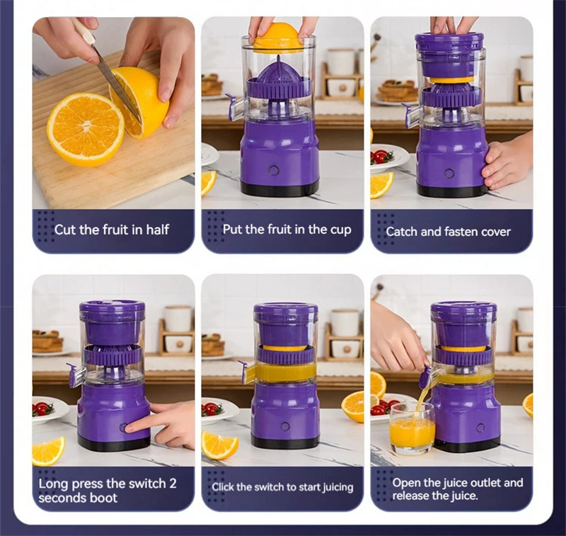 【Easy to Use】: This lemon squeezer has an electric operation, a long press of 2 seconds to start, and a button operation, suitable for the