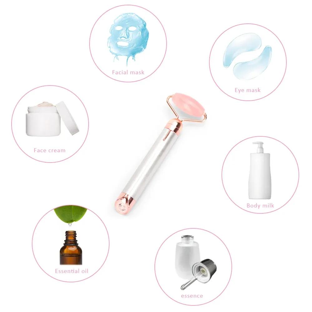 - The next generation of facial rolling: combines a controlled vibrating technology with genuine Rose Quartz stone.