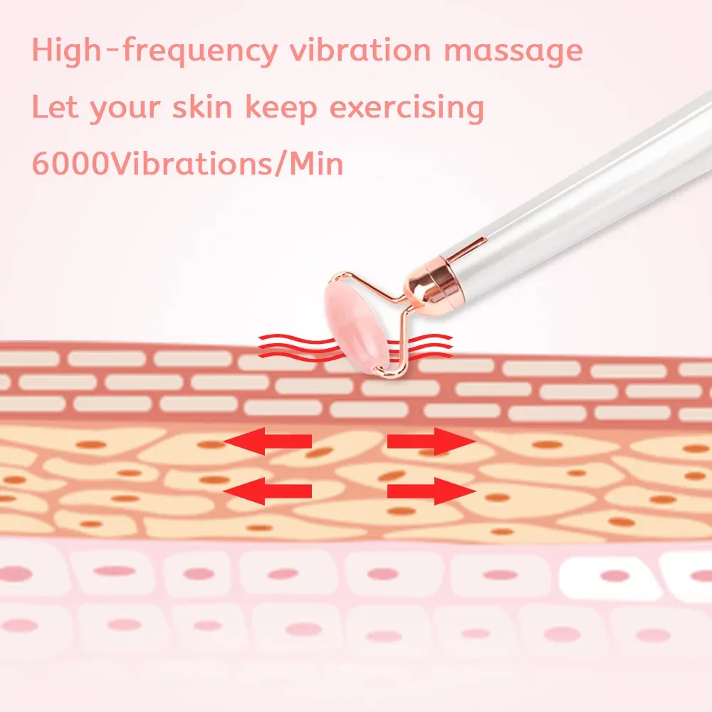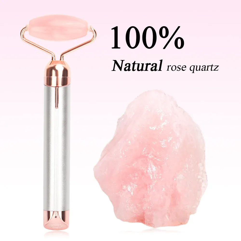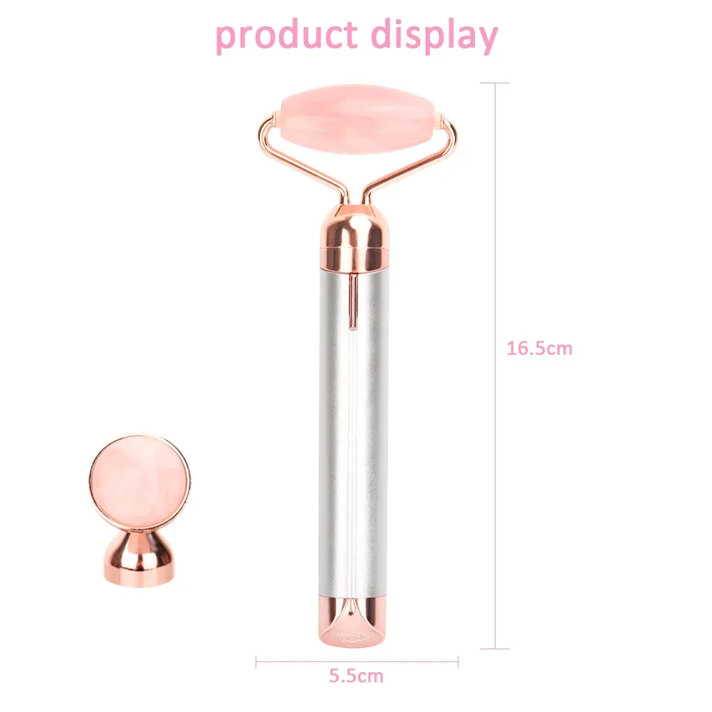 Electric Vibrating Natural Rose Quartz Jade Facial Roller