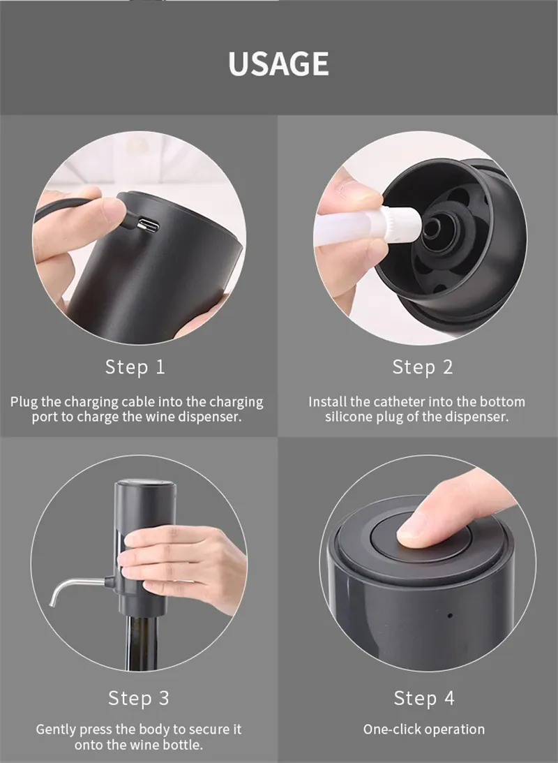 Enhance your wine enjoyment with the electric wine decanter's one-button operation and easy-to-use design.
