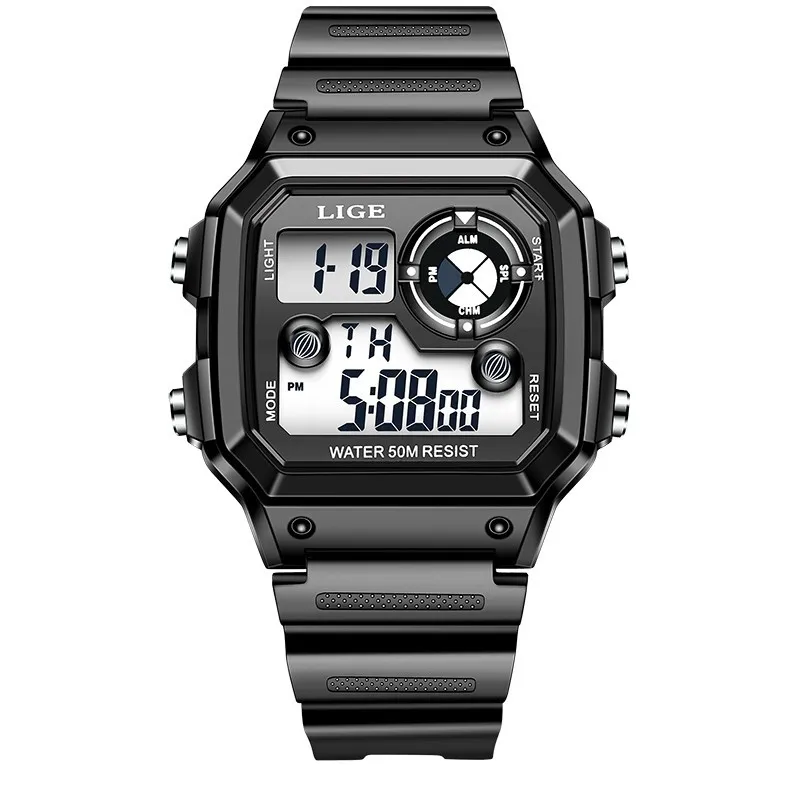 This electronic watch is water-resistant, meaning it can withstand everyday activities like washing your hands or getting caught in the rain. It is not intended for swimming or diving, but it provides peace of mind for everyday activities.
