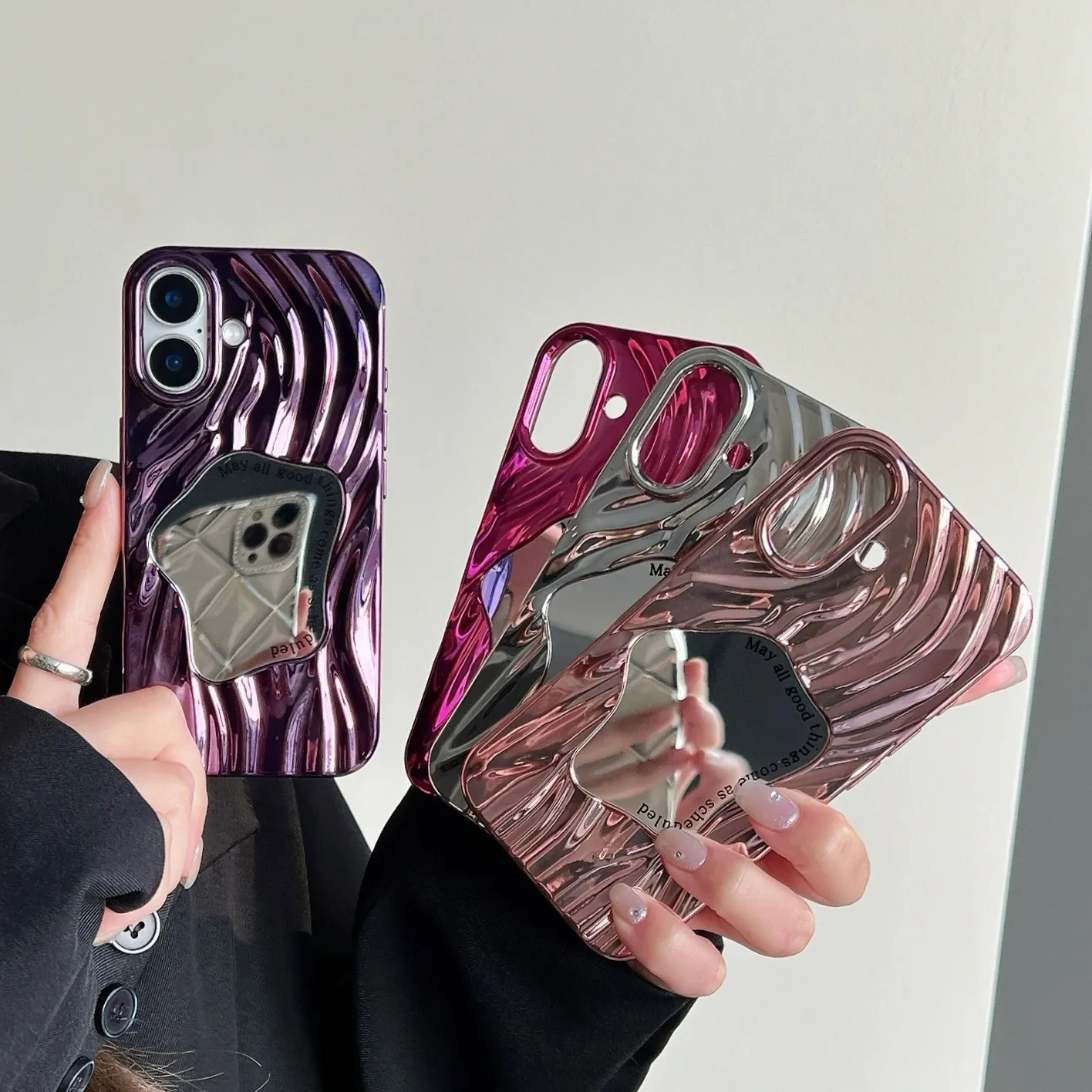 The Electroplating Wave Pattern Mirror Phone Case combines modern aesthetics with advanced protection. Featuring a wave-patterned electroplating mirror finish, it reflects light beautifully, giving your phone a premium, high-tech look that stands out in any setting.