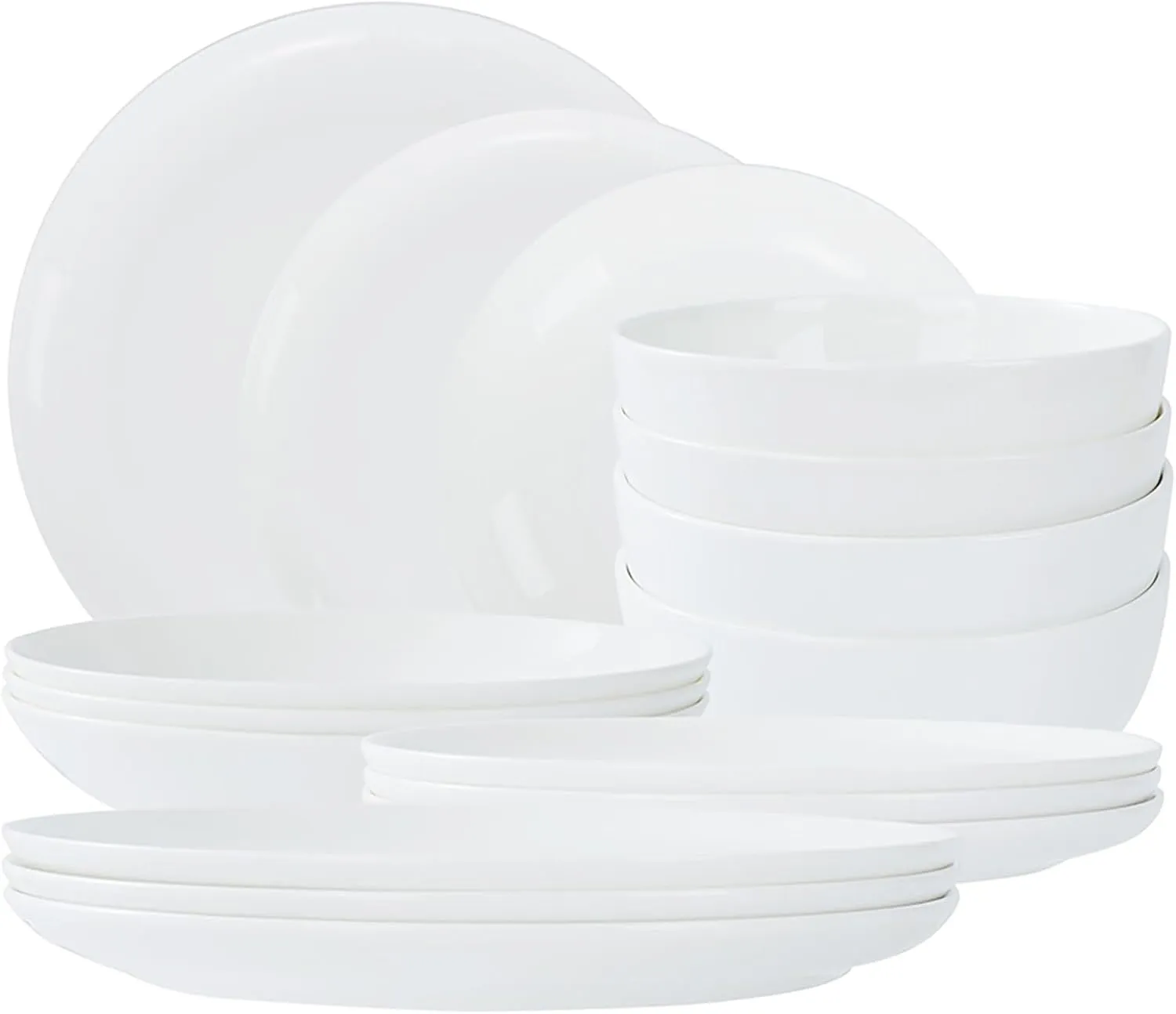 - LILY 16-PIECE SET: This set offers service for 4, including four 11-inch dinner plates, four 9.25-inch salad plates, four 8-inch pasta plates, and four 6-inch cereal bowls.