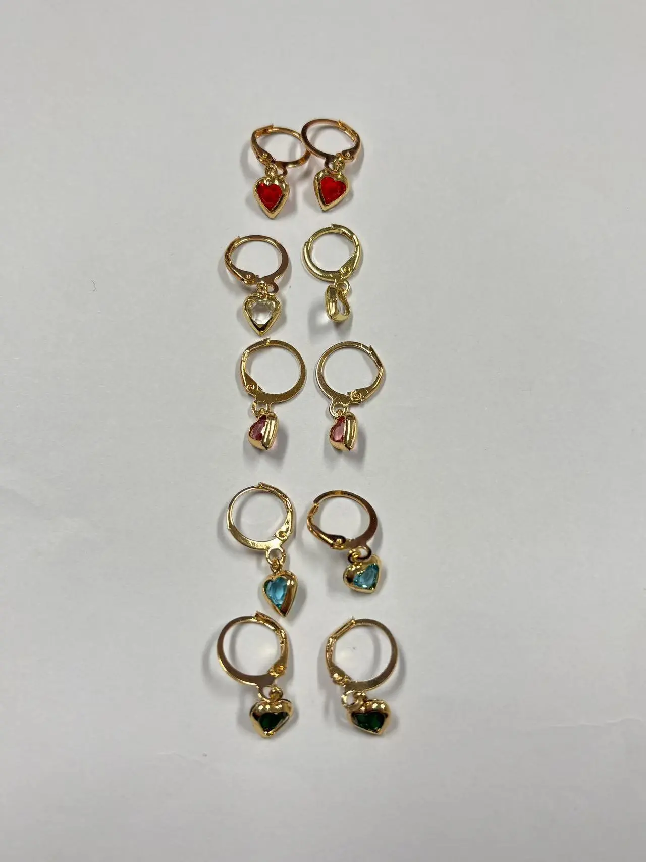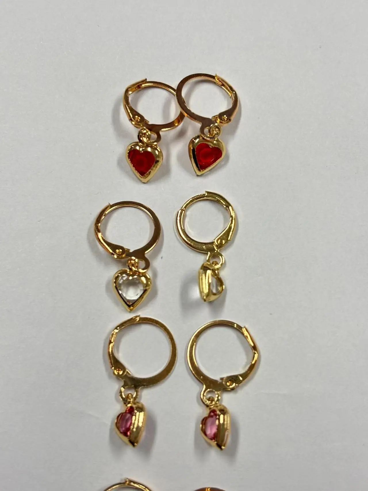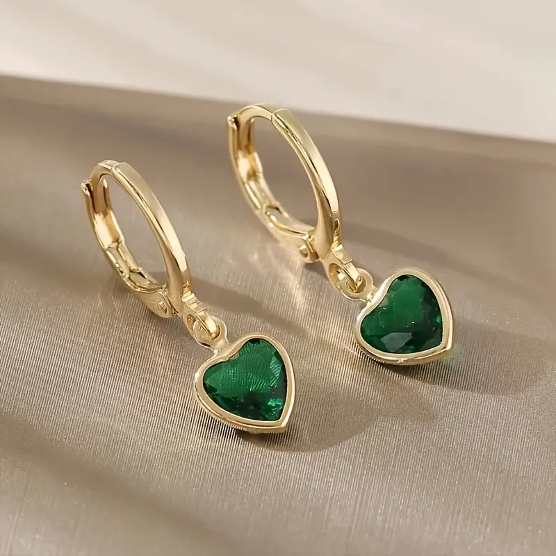 Featuring heart-shaped zircon stones in vibrant colors, these earrings capture light beautifully, offering a brilliant sparkle that enhances any outfit.