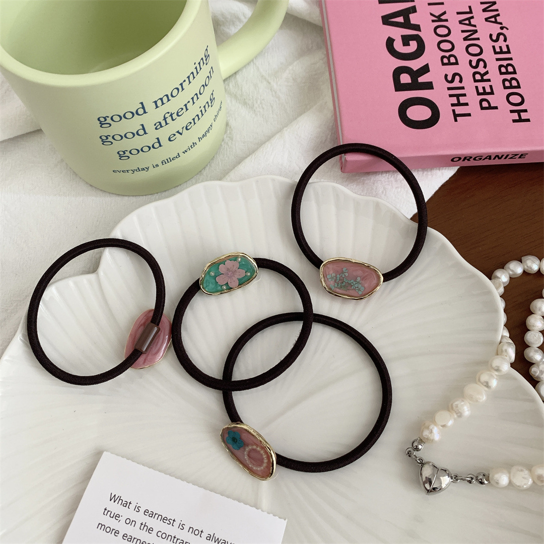 Each gemstone in the set adds a sophisticated touch to your ensemble. The collection includes a variety of colors, such as elegant green, soft pink, warm beige, and a delightful multicolor option, allowing you to choose a hair tie that matches your outfit or mood. The gemstones' polished finish and subtle sparkle enhance their visual appeal, making them a versatile accessory for any occasion.