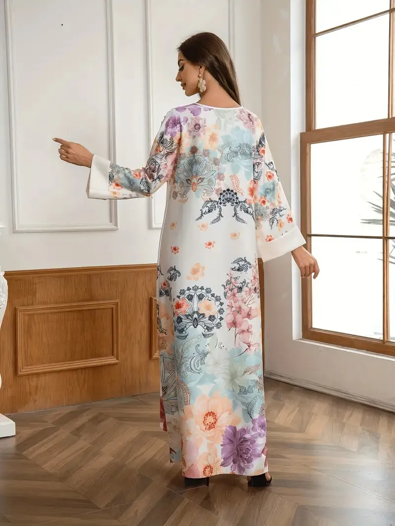Elegant Floral Print Long Kaftan Dress – Timeless Beauty and Effortless Comfort