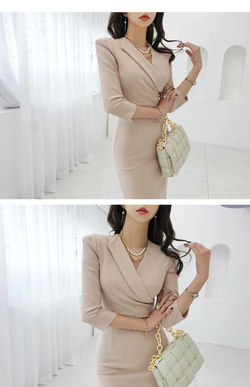 Elegant Slim-fit Mid-length Elastic Hip Business Dress