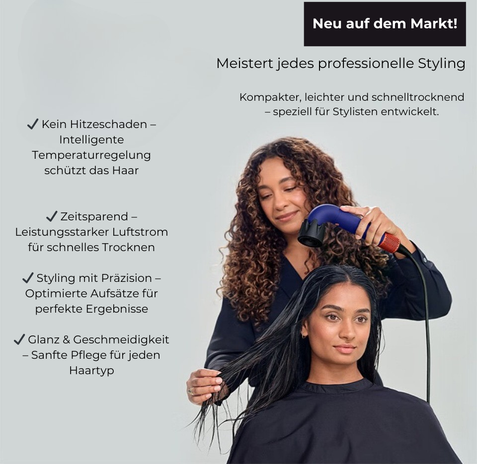 Experience professional hair styling at its best! With the innovative technology of the Elynea Airsonic R Professional, you can dry and style your hair faster and more gently than ever before. Designed for stylists, but perfect for anyone who values first-class hair care.