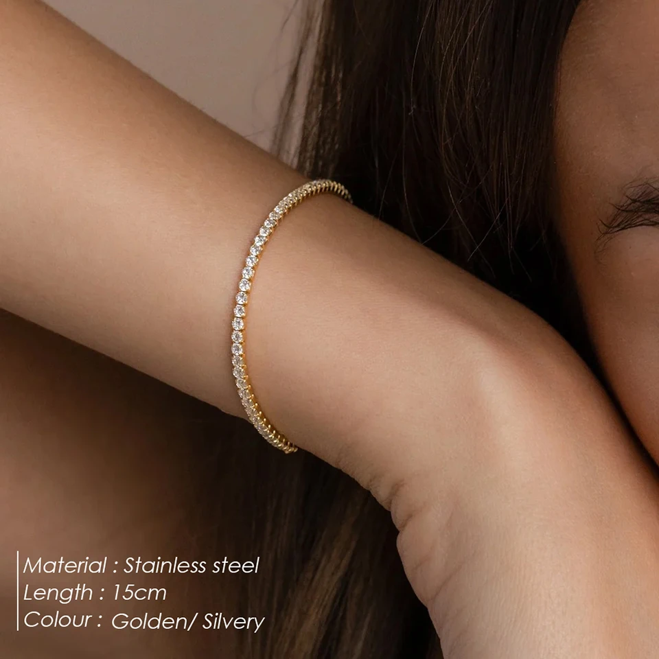 bridal accessories collection with elegance and sophistication. Crafted from high-quality stainless steel, this tennis bracelet is adorned