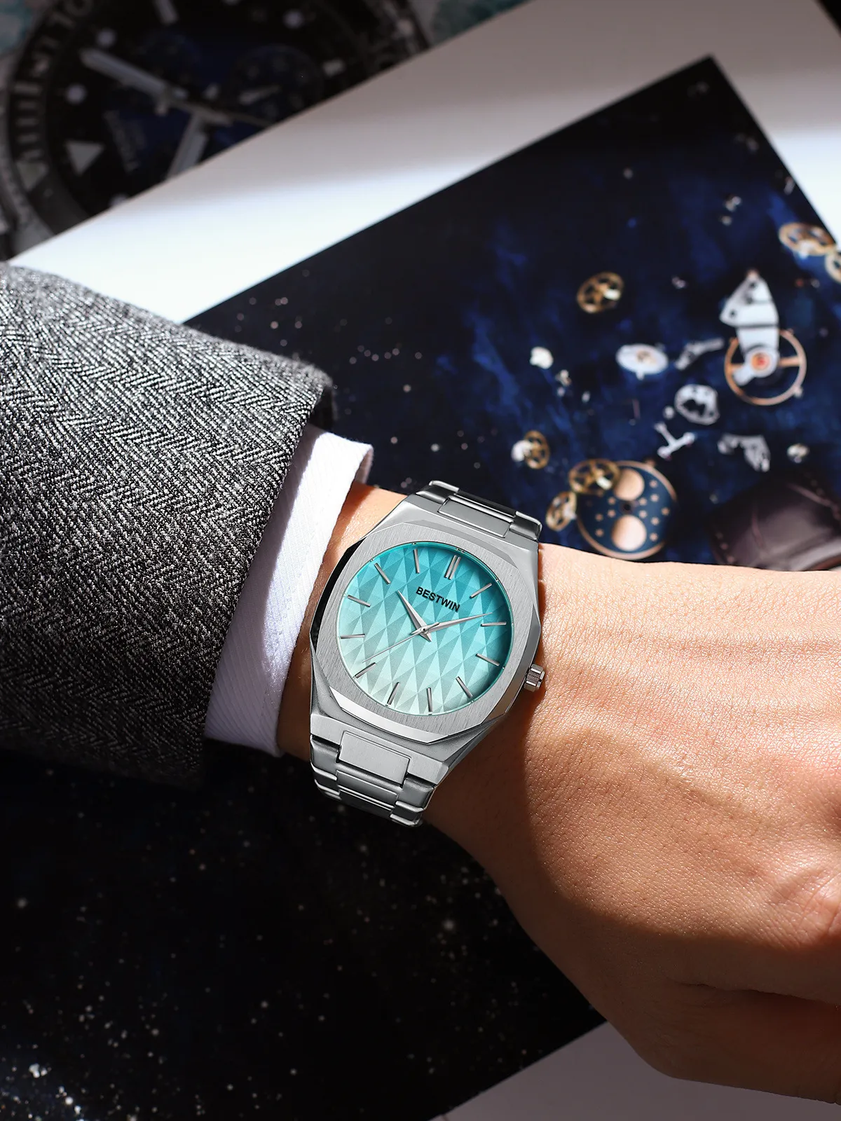 The Embossed Dial Fashion Men's Watch offers a unique blend of contemporary design and timeless elegance, making it the perfect accessory