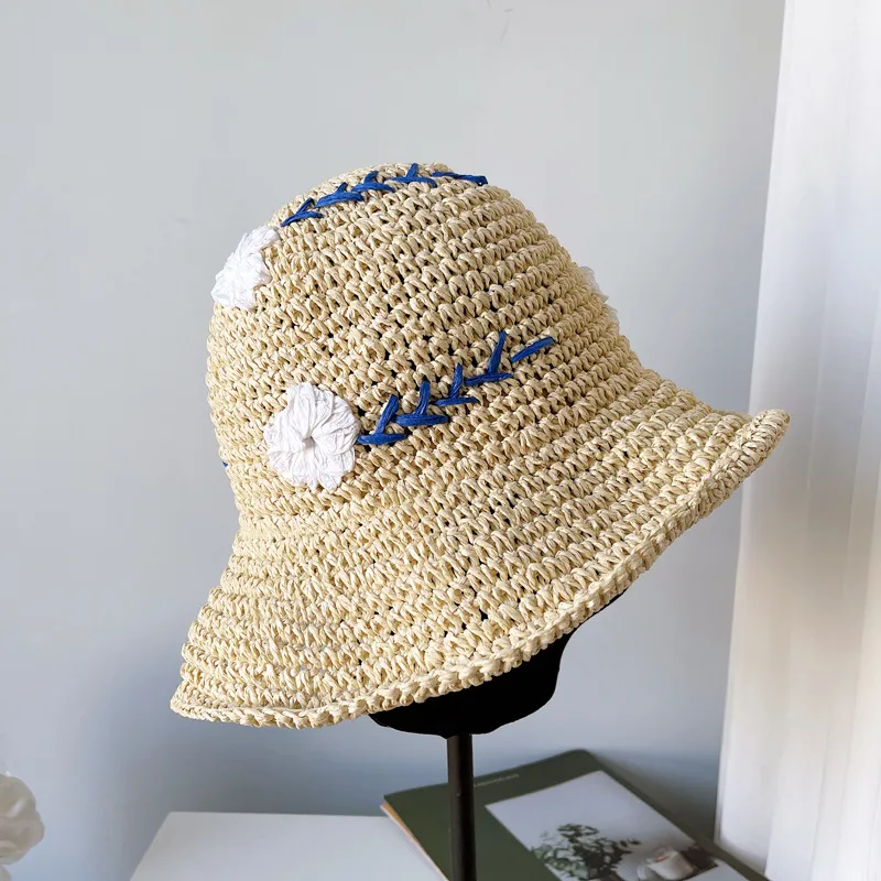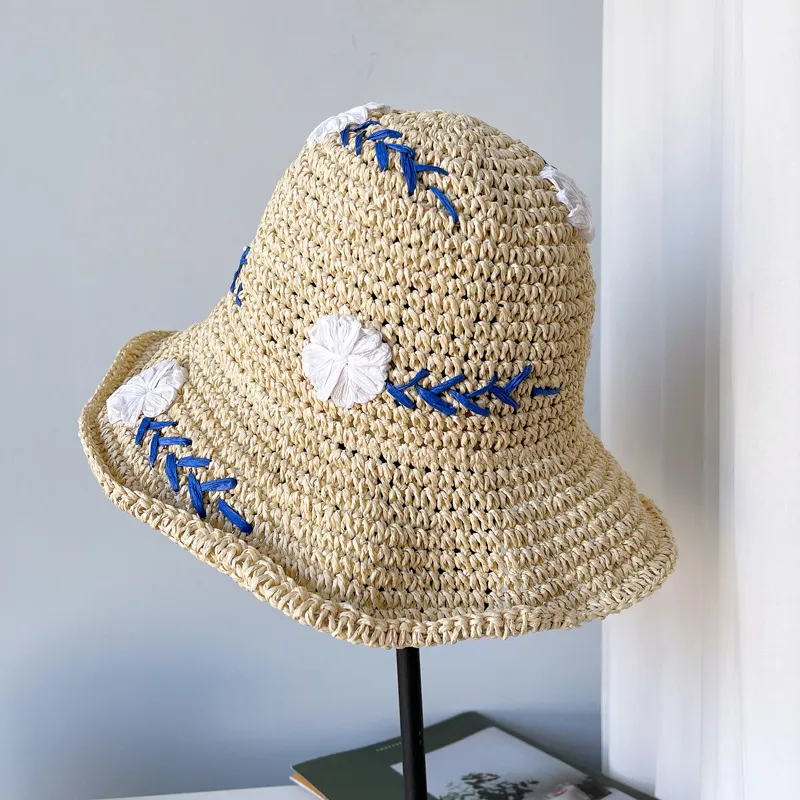 Embroidered Flowers, Sun Protection, Seaside Beach Hat
