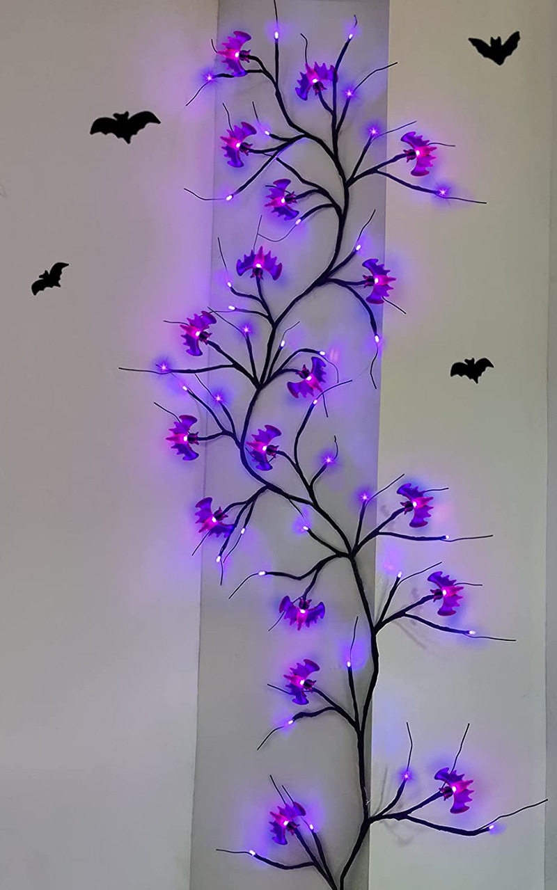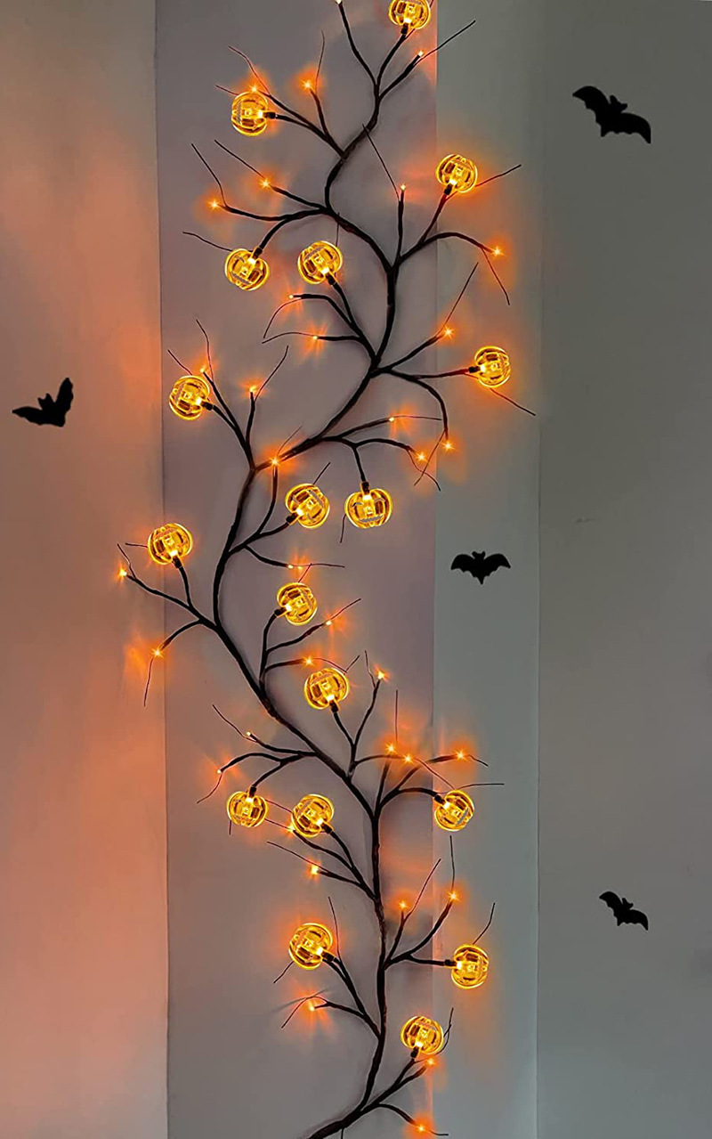 Enchanted Willow Vine LED Lights with Cartoon Bat & Pumpki Designs