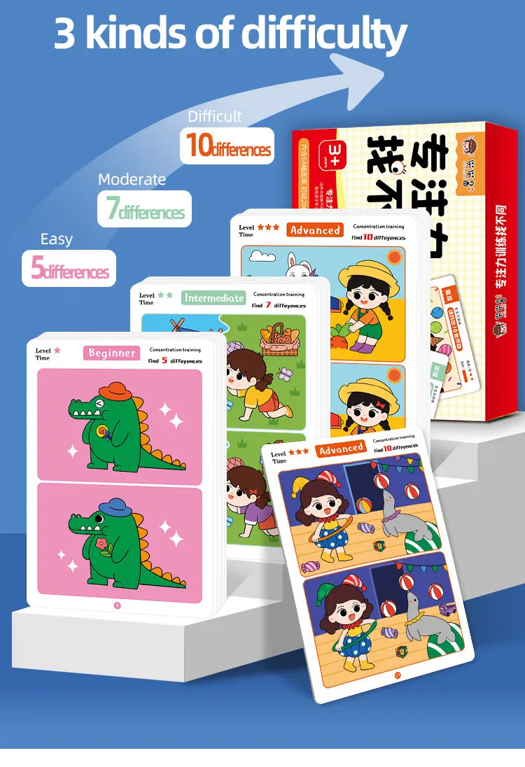 concentration, memory, and cognitive skills. This set of cards features pairs of images with subtle differences that challenge kids to spot