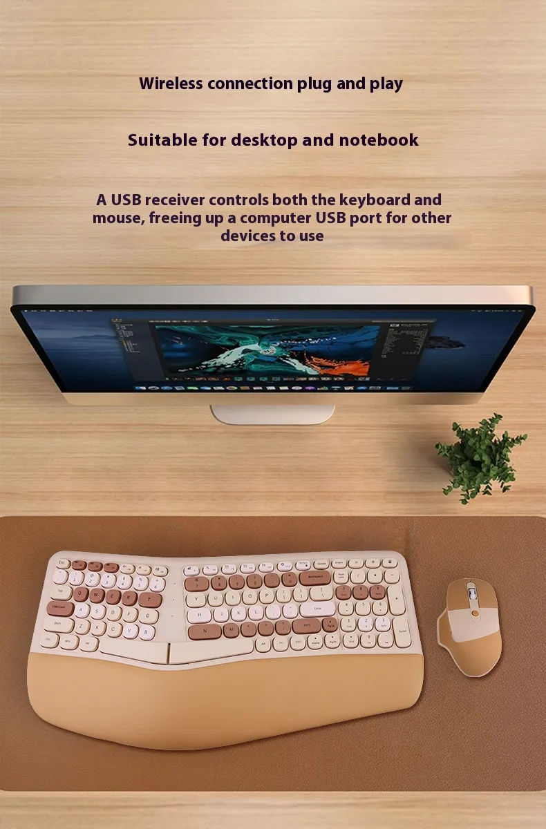The Ergonomic Veneer Wrist Splint Wireless Keyboard and Mouse Set is designed for those who prioritize comfort, efficiency, and style. Whether you're spending long hours typing at a desk, playing games, or navigating your laptop, the ergonomic wrist splint and wireless convenience provide an ideal solution to reduce strain and improve productivity. The veneer design adds a natural aesthetic to your workspace, while the responsive keys and precise mouse control ensure you work comfortably for longer periods.