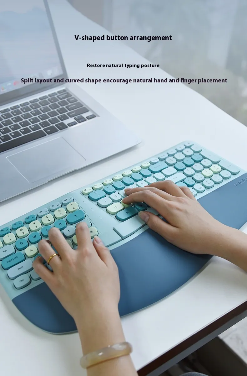 Ergonomic Veneer Wrist Splint Wireless Keyboard and Mouse Set – Comfort, Support, and Precision for Efficient Typing