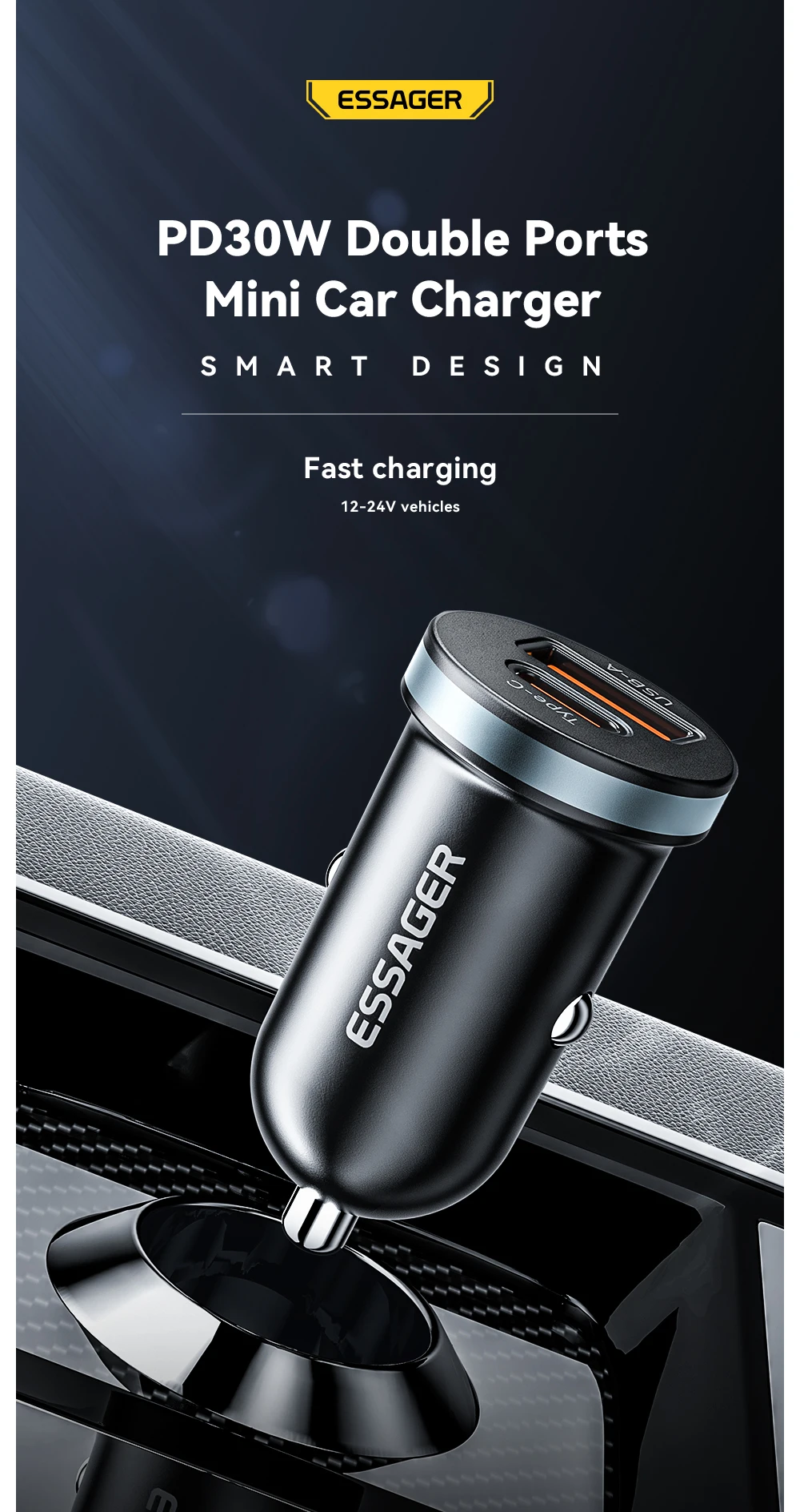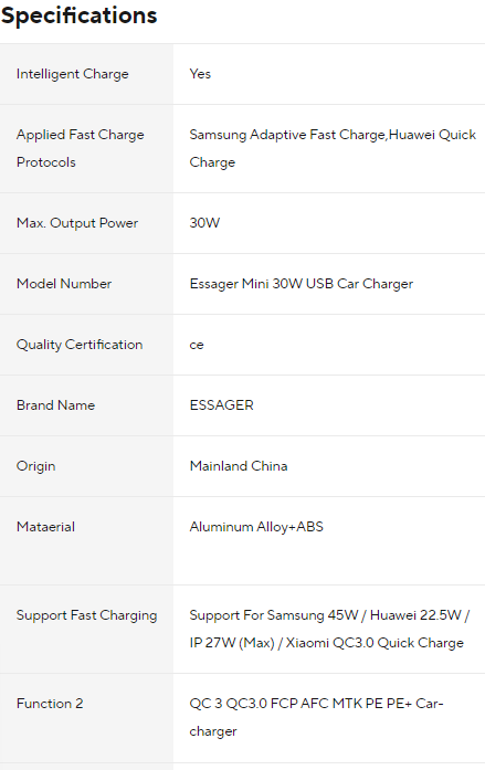 Essager 30W USB Car Charger - Quick Charge 4.0/3.0 with PD