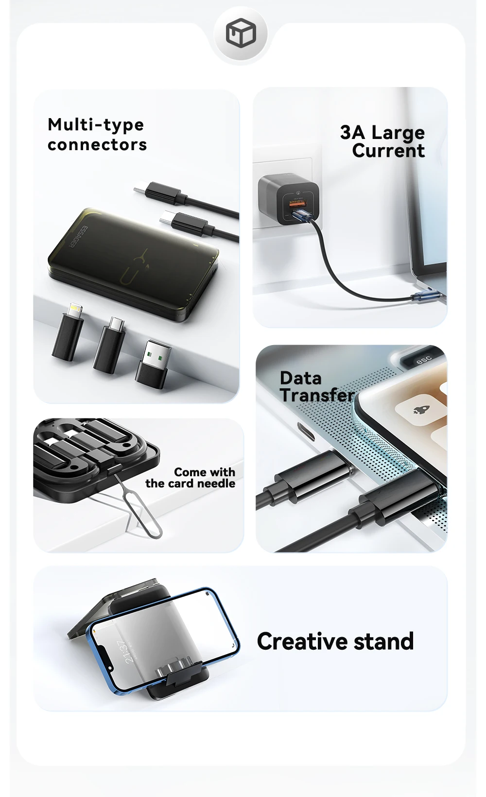 Type-C, and Micro USB devices. Complete with a compact holder storage box, it’s perfect