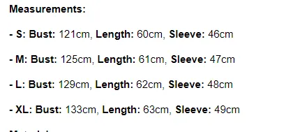 Asian sizes are 1 to 2 sizes smaller than European and American people. Choose the larger size if your size between two sizes. Please allow 2-3cm differences due to manual measurement.
