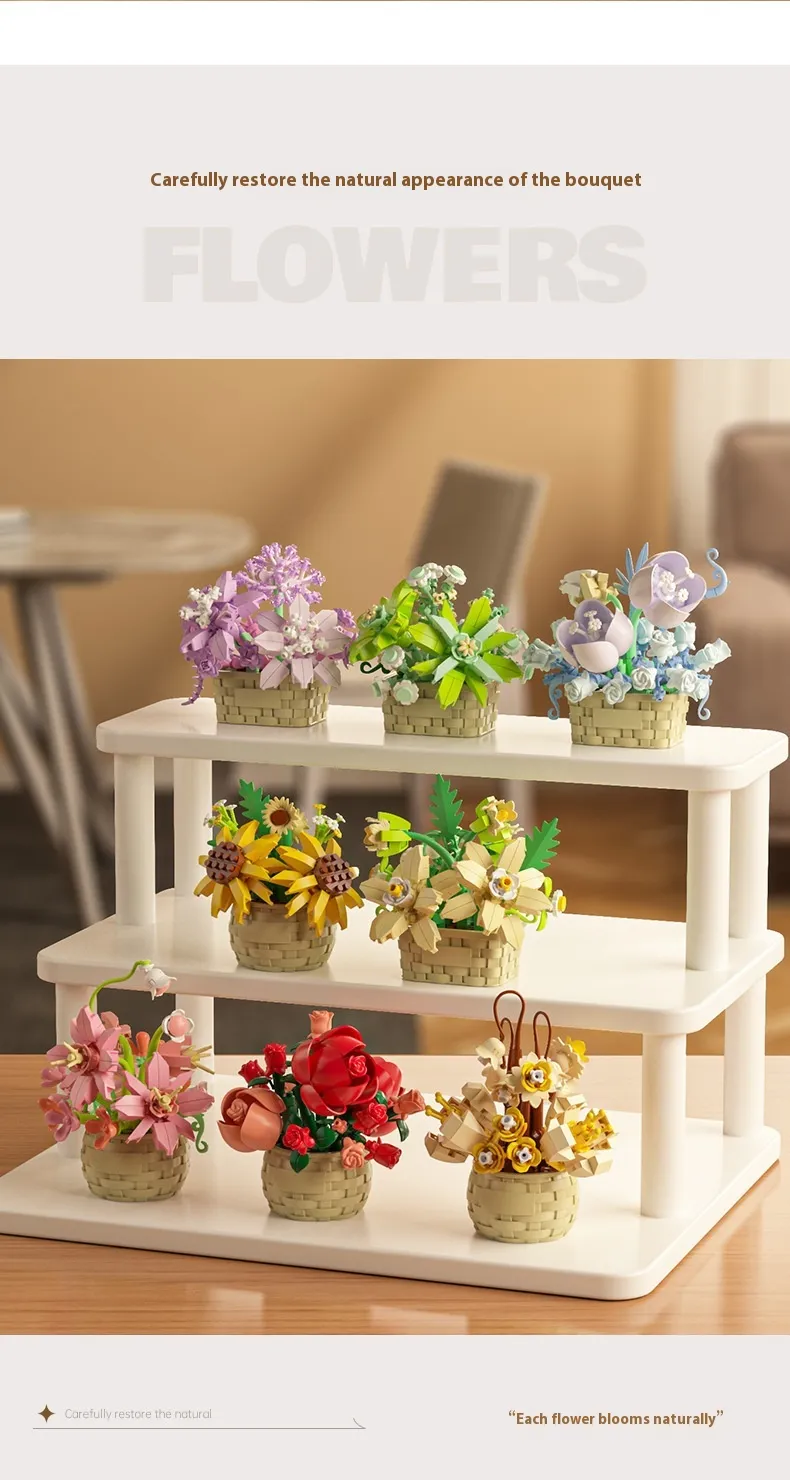 Eternal Flower Basket Decoration Rose Bouquet Children Educational Assembly Toy