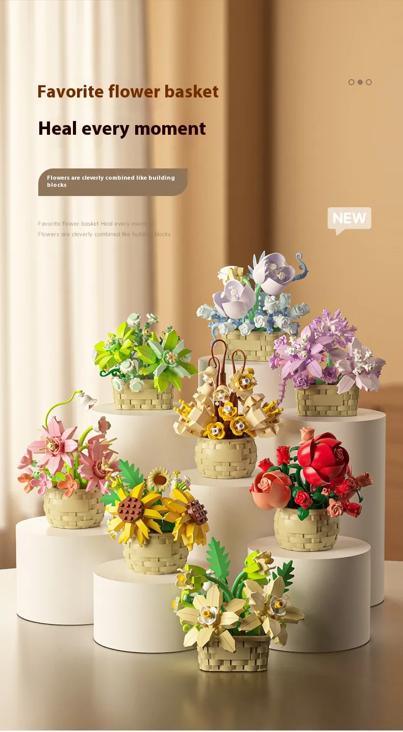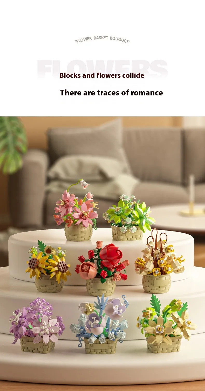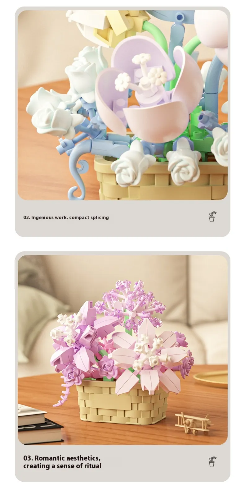 Eternal Flower Basket Decoration – Rose Bouquet Educational Assembly Toy