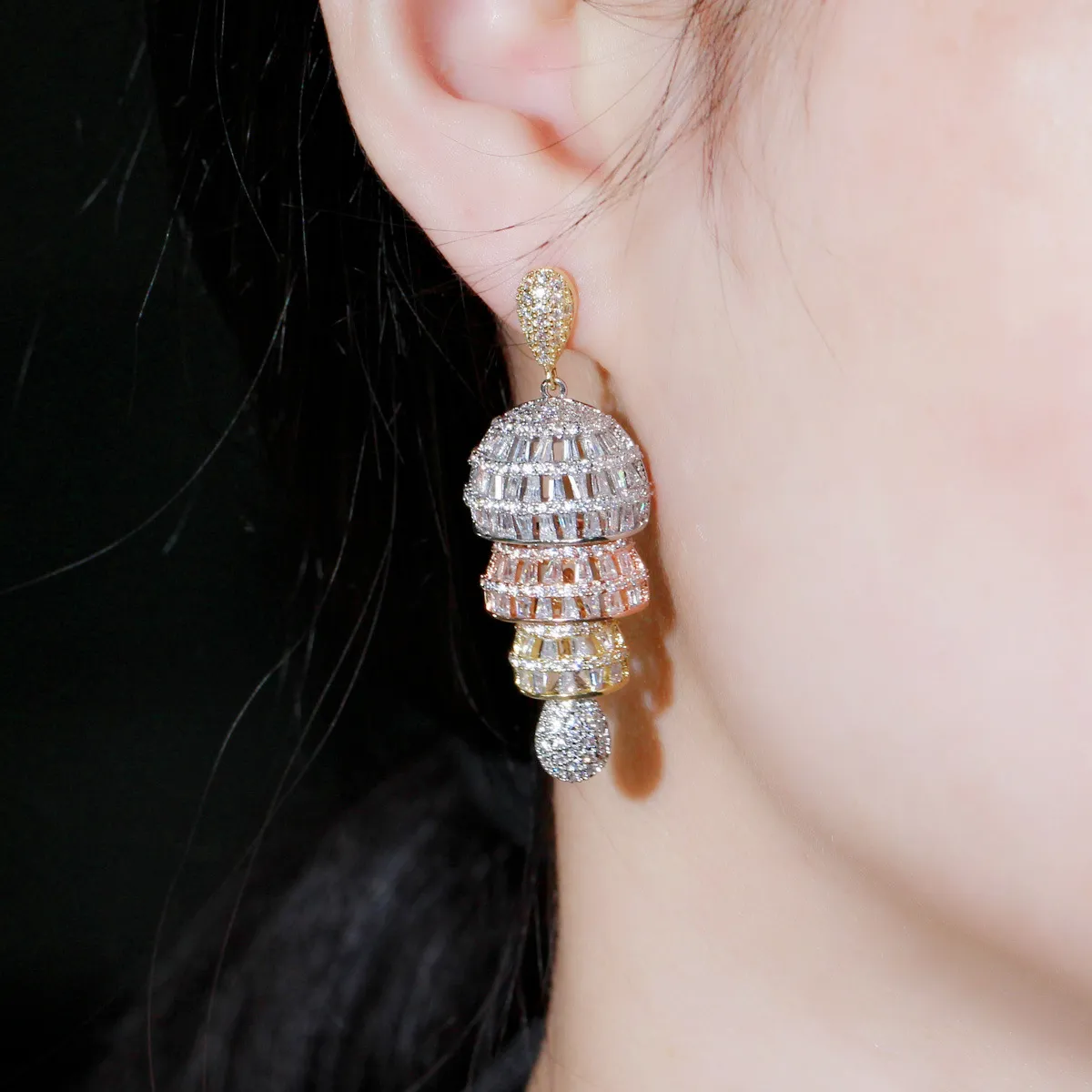 Why Choose Ethnic Style Three-Color Electroplated Micro Inlaid Zircon Earrings?