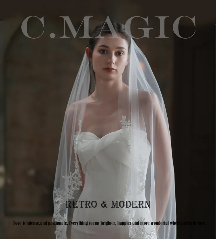 European And American Bride Veil Women's White Single Layer Lace Headdress