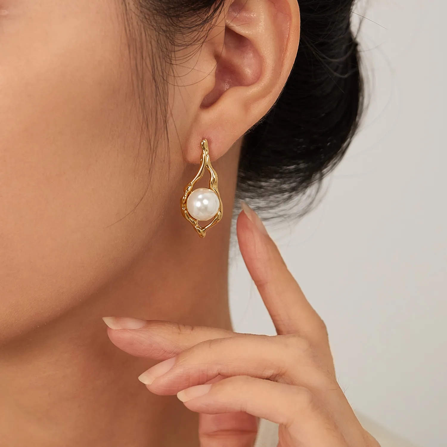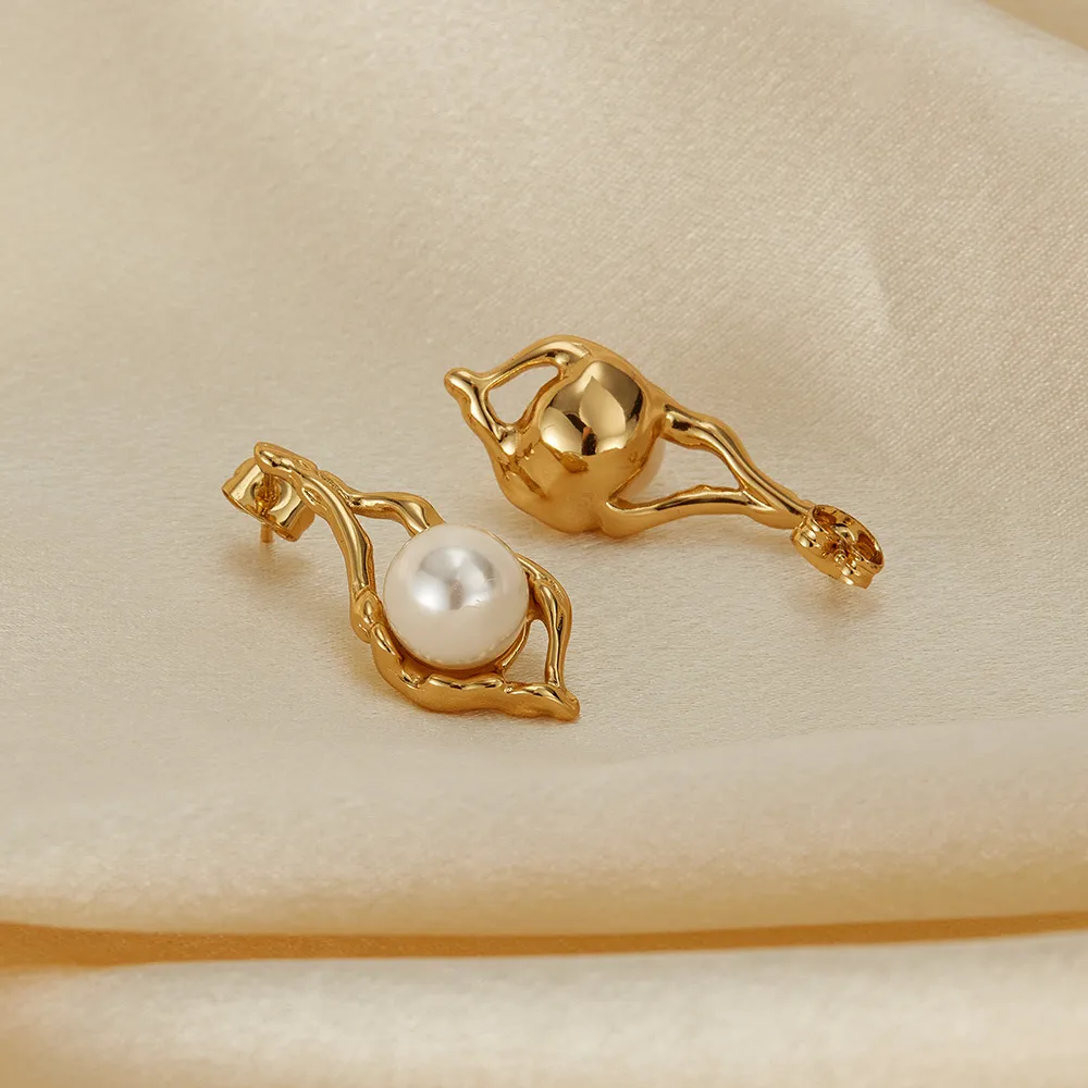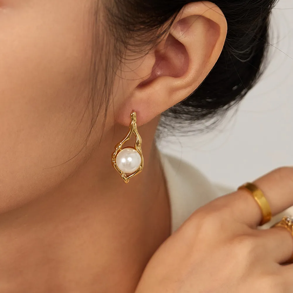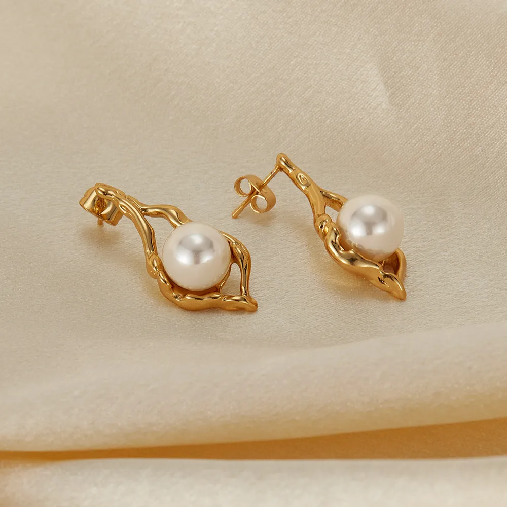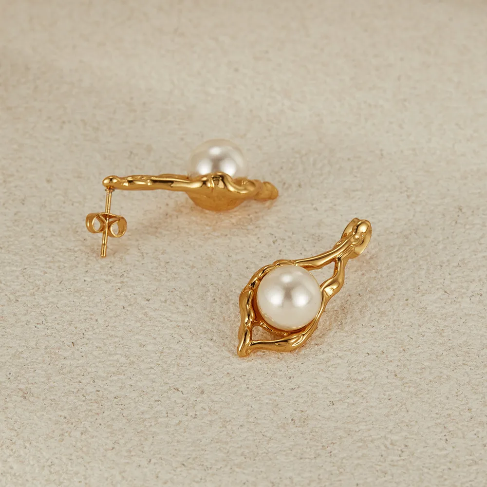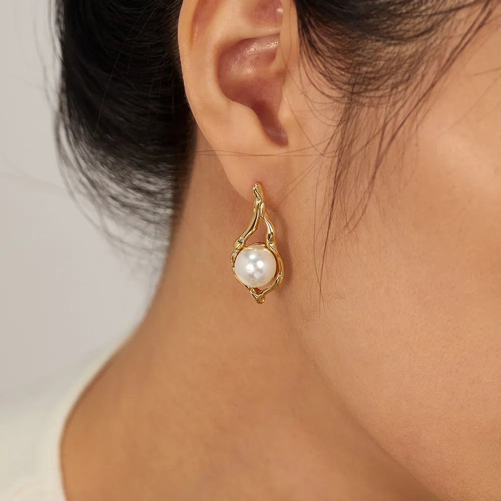 European And American Entry Lux Temperament Earrings Stainless Steel Geometric Pearl