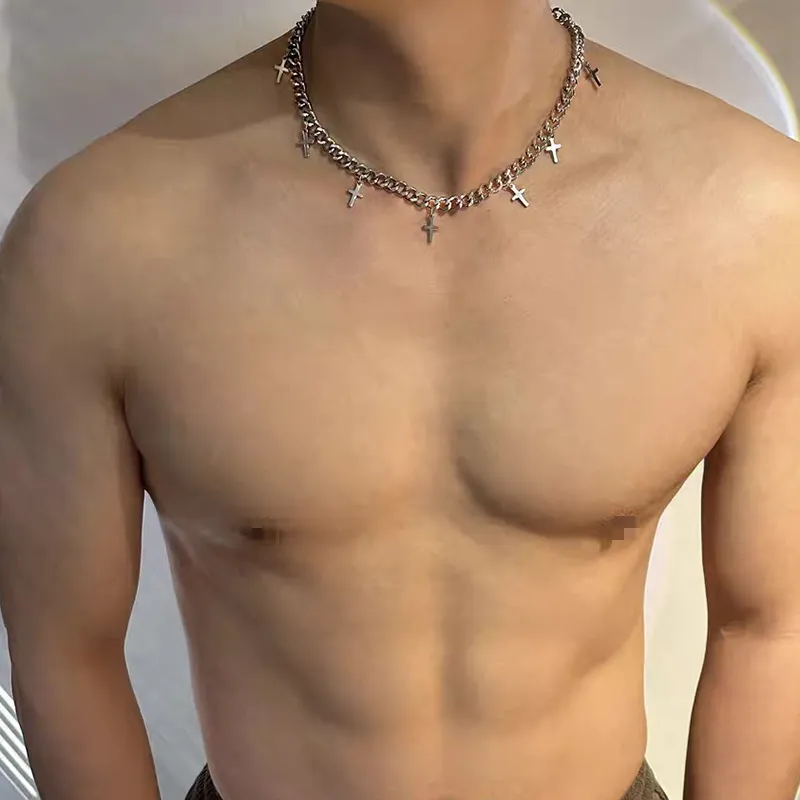 European And American Fashion Men's Fashionable Design Clavicle Chain Cold Style Simple Hip Hop Cross Necklace