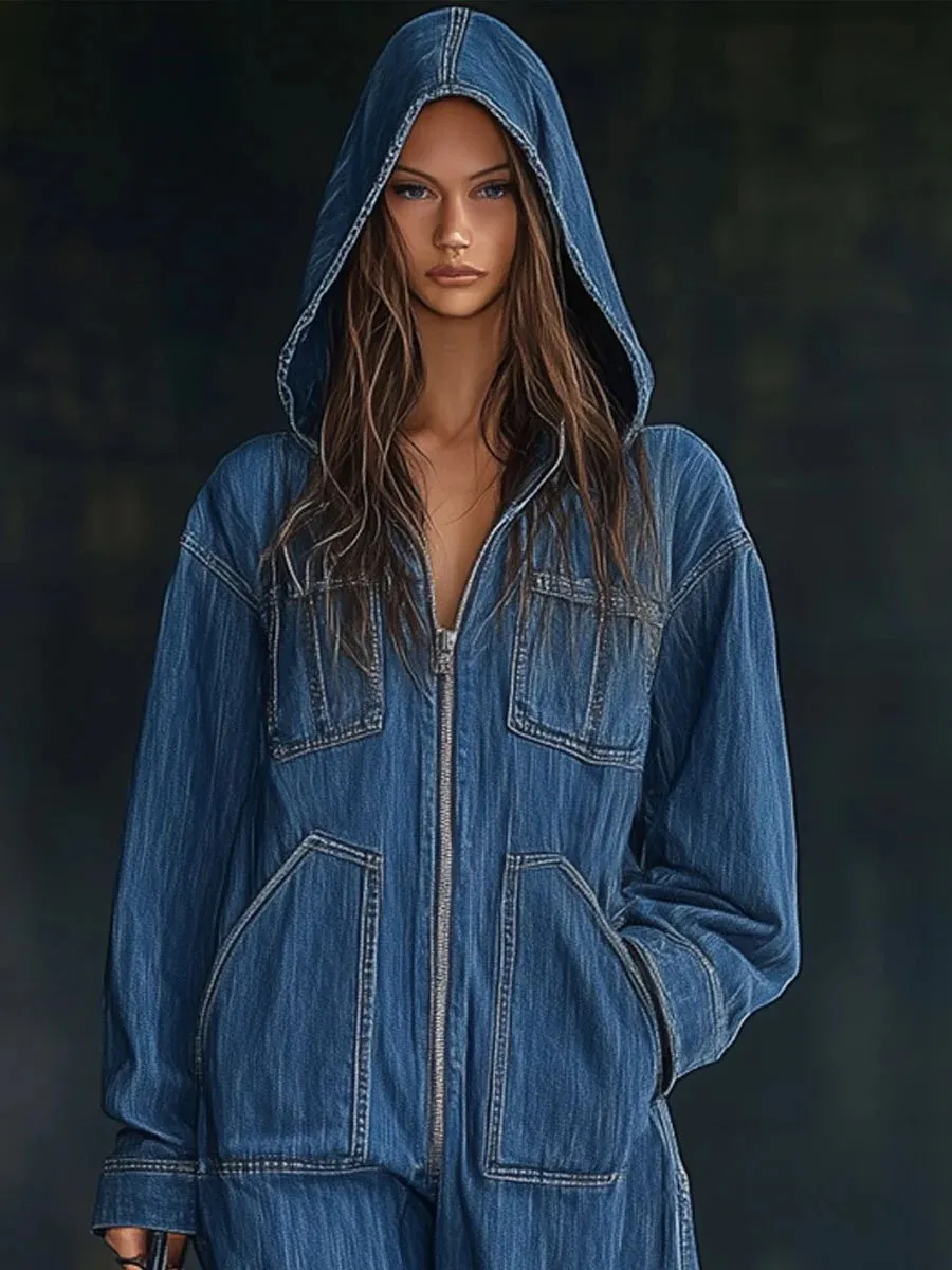 European And American Hooded Overall Jeans Women