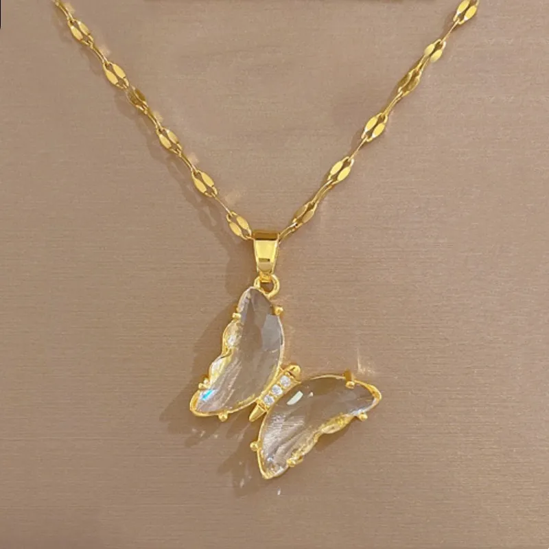 European And American Ins Crystal Zircon Butterfly Pendant Necklace