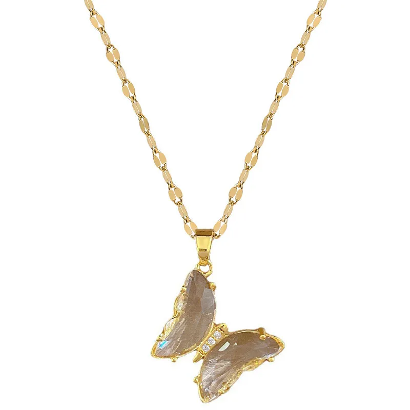 European and American INS Crystal Zircon Butterfly Pendant Necklace