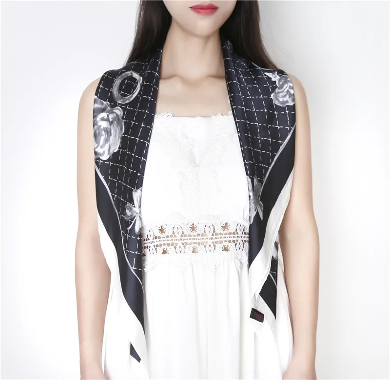 European And American Large Square Scarf Line Rose Scarf Elegant Ladies Scarf