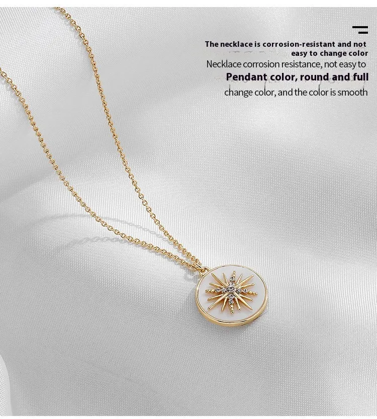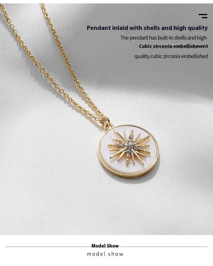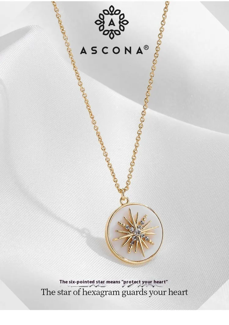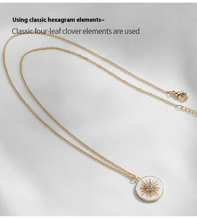 European And American Modern White Six-pointed Star Fritillary Compass Necklace
