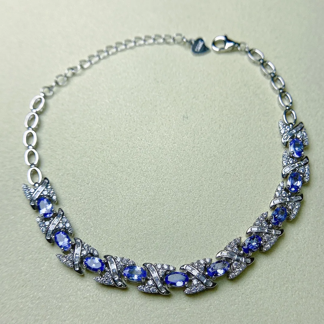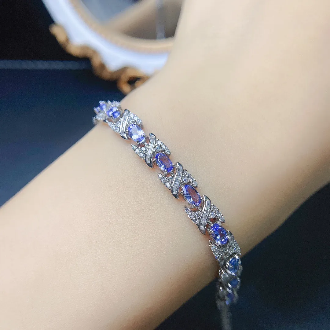European And American Natural Tanzanite Bracelet S925 Silver Inlaid Main Stone 35