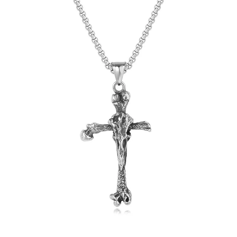 European And American Personalized Vintage Viking Long Pointed Bone Cross Men's Titanium Steel Pendant