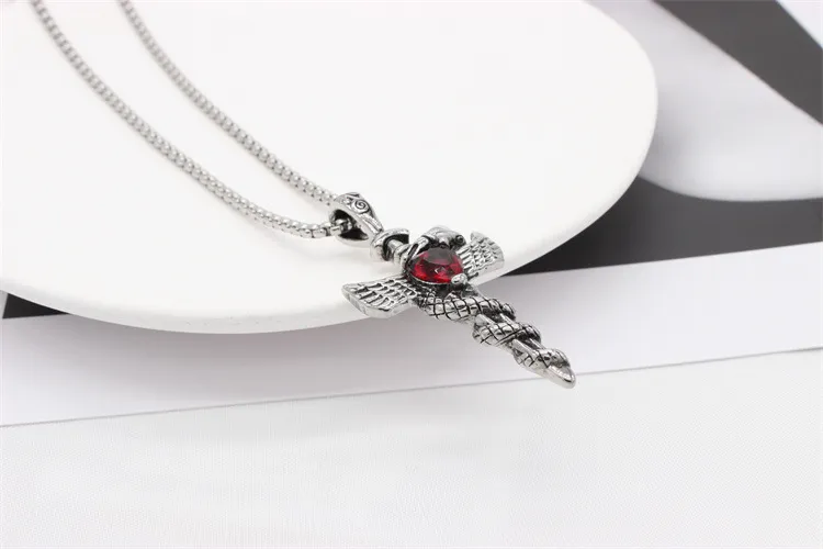 European And American Personalized Vintage Wings Cross Men's Titanium Steel Pendant Necklace