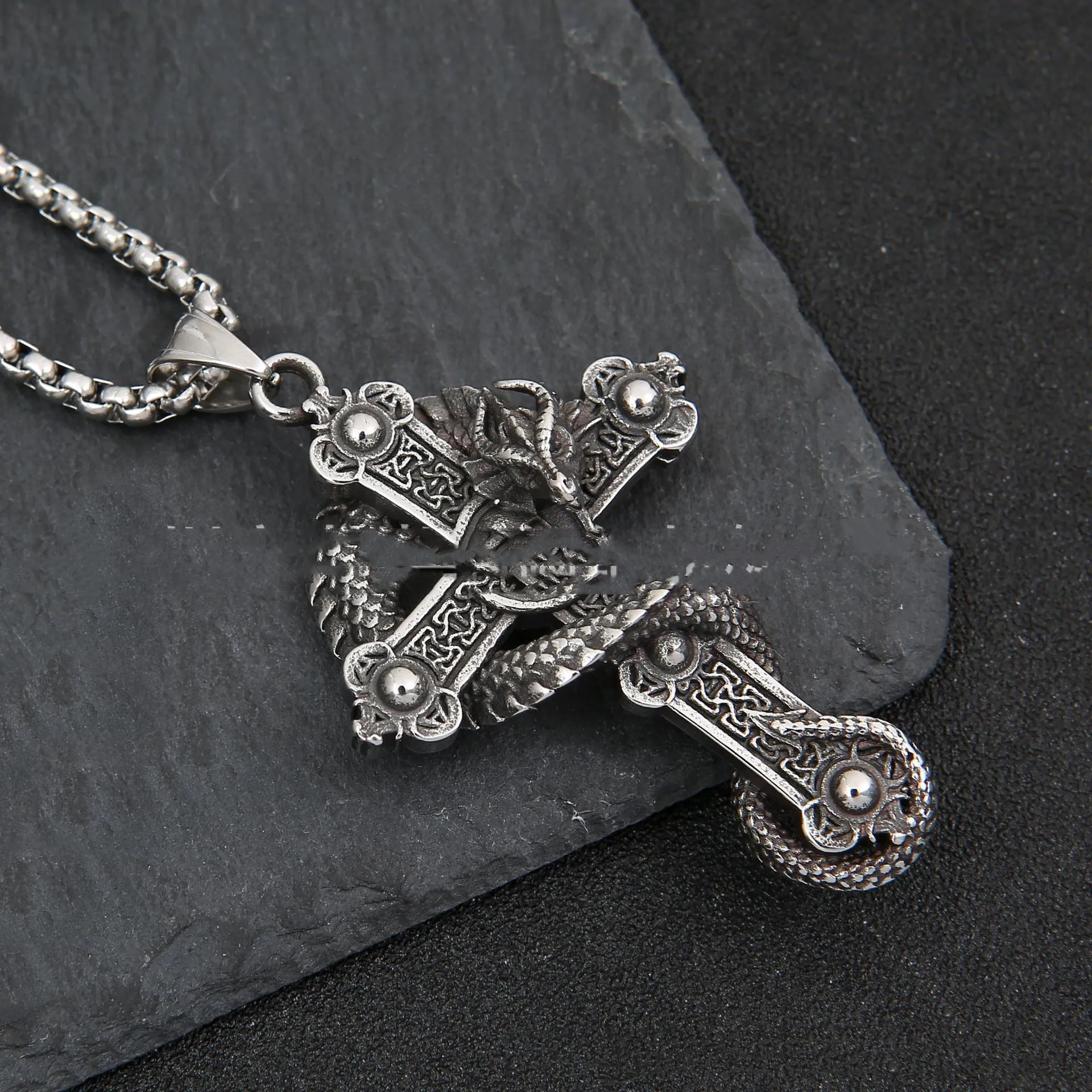Home › Plants, Gifts, Toys & More › Gift-tree-european-and-american-stainless-steel-necklace-cross-dragon-pendant