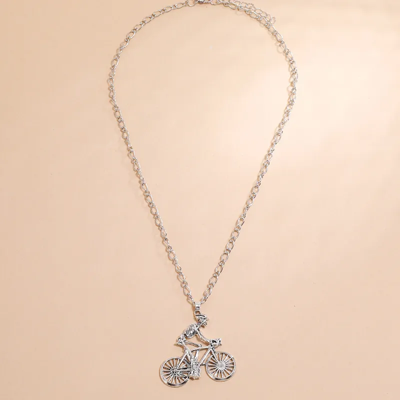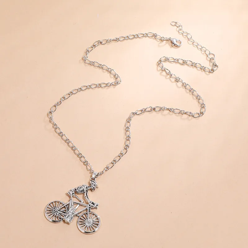 European And American Street Hip-Hop Simple Retro Personality Exaggerated Clavicle Chain Fashion Trend Skull Man Riding Bicycle Necklace