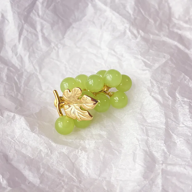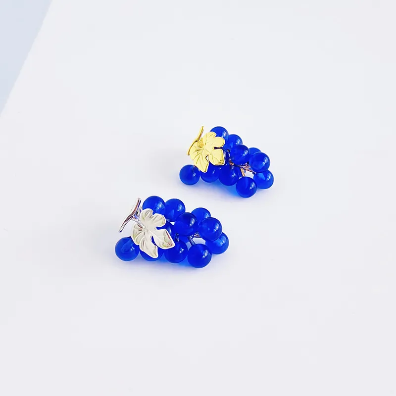 These earrings feature clusters of grapes in rich purple, with accents of blue and green, creating a colorful and fresh look. The detailed craftsmanship highlights the natural beauty of grapes, making these earrings a statement piece for fashion-forward individuals.